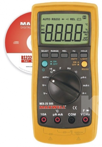 Kijelző: 3 3/4 digites DC V: 0,1mV - 1000V AC V: 1mV - 700V DC A: 0,1µA - 10A AC A: 0,1µA - 10A Ellenállás: 0,1ohm - 40Mohm Kapacitás: 10pF - 100µF Frekvencia: 5Hz - 200kHz Hőmérséklet: -20°C - +1000°C RS 232 kommunikáció Kitöltési tényező: 0,1% - 99% Tranzisztor teszt hFE Dióda teszt Folytonossági teszt Relatív érték tartás Hangjelzés Háttér megvilágítás Adattartás (HOLD) Auto kikapcsolás